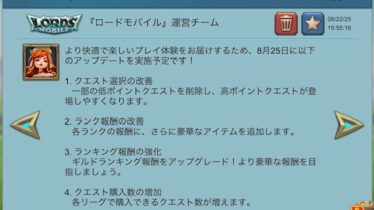 ロードモバイル攻略(その143)ギルド共闘アップデートとギルドルール見直しによる追放者(人の悪口が書いてあるので後半はスルー推奨)
