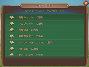 「カピバラ人形」はカピバラ探検で写真を探した時にランダムで入手できます。