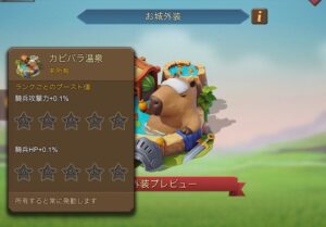 なんで唐突にカピバラなんだよ!?と疑問でしたが、よく見ればブサカワでロードモバイルと馴染んでいるようにも思えてきました。