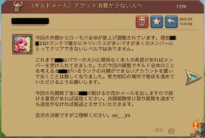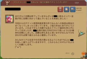 9月1日の朝7時過ぎの時点でギルドメンバー全員が一定数以上のチケットを使用してくれました。